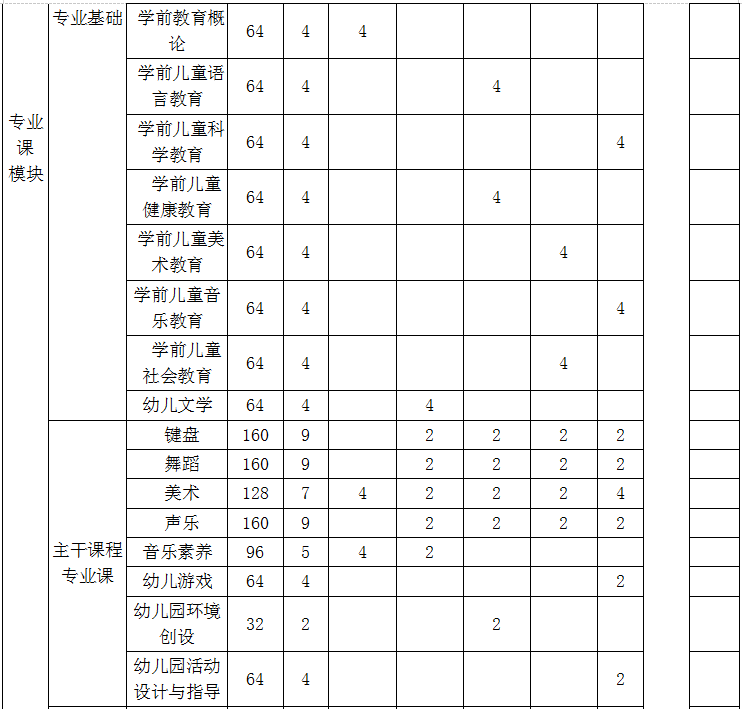 七、课程设置表