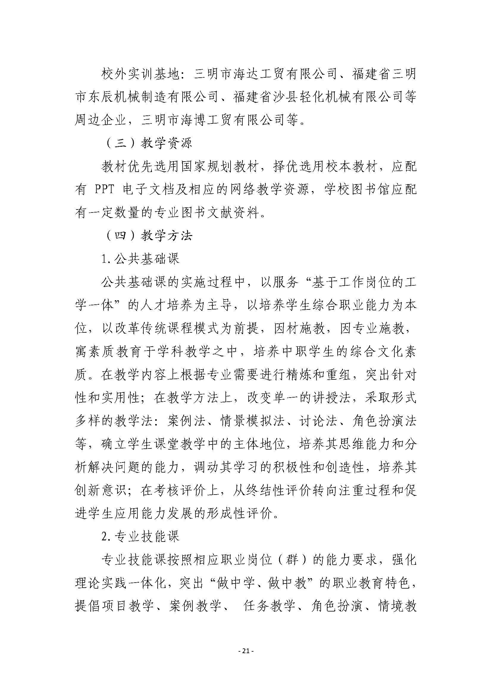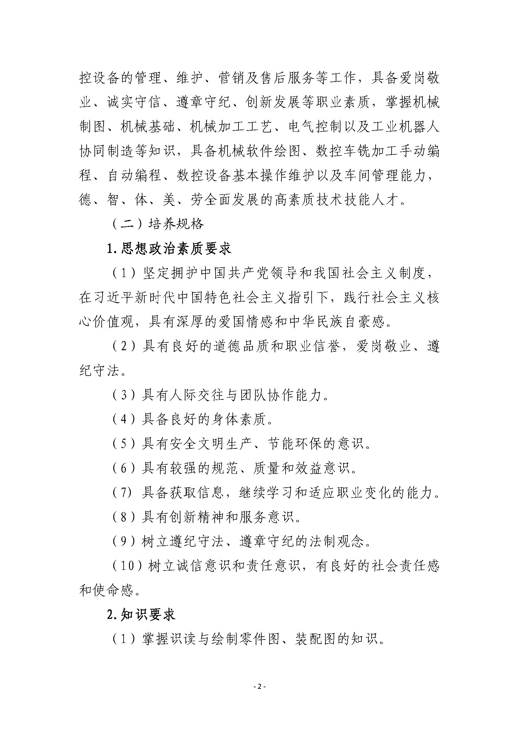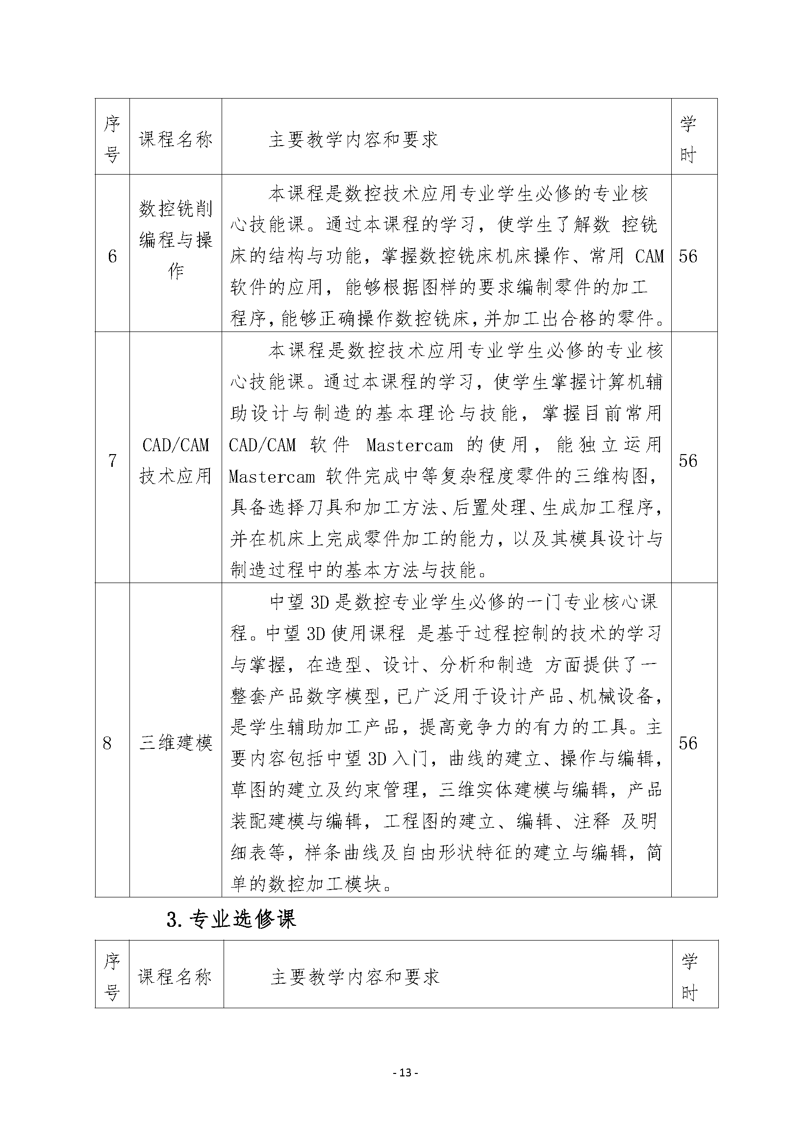 三明市农业学校数控技术应用专业人才培养方案(2023)
