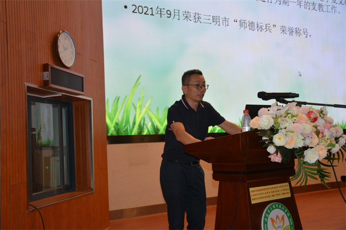 傅鸿达老师以《起始于辛劳 收获于平淡》为题,交流了2020年9月至2021年7月在闽宁合作中主动作为,深入到宁夏中宁县职业技术学校对口帮扶,克服一切困难,为支援西部学校建设作出了贡献的经历,深深感动着在场的每位老师。