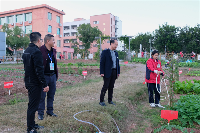 为深入开展学习贯彻习近平新时代中国特色社会主义思想主题教育,弘扬“四下基层”优良传统,2023年11月20日下午,三明市农业学校党委书记、校长罗世钦,党委委员、副校长陈文优及相关部门同志一同来到校内学生劳动实践基地“雁勤园”“雁行园”及学生劳动实践基地8S劳动工具管理房,实地查看学生植物种植管护情况及劳动工具使用管理情况,深入了解学生劳动教育开展现状。