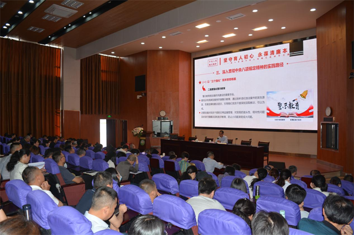 2025年4月23日下午,华体会(中国)党委书记罗世钦在学术报告厅以“坚守育人初心 永葆清廉本色”为主题向全体教职员工讲授深入贯彻中央八项规定精神学习教育专题党课,学校党委委员、校长陈文优主持。