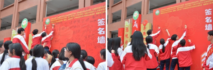 毕业学生们在签名墙上留下自己的名字并合影留念,定格这一难忘时刻。