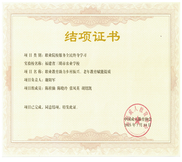 2025年8月4日至8日,由中国成人教育协会主办的2025年“职业院校服务全民终身学习项目”工作推进会在贵州省贵阳市举行。本次会议汇聚了全国第一、二、三批实验校共610所,三明市农业学校作为首批实验校参会。